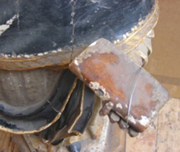 The original painted and gilded layers of paint were covered by a thick layer of oil based paint.